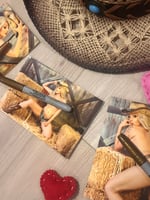18+ only! Bundle features five signed high res, glossy 4x6s. Note at checkout if you would like the photos personalized! Features t0pless photos.