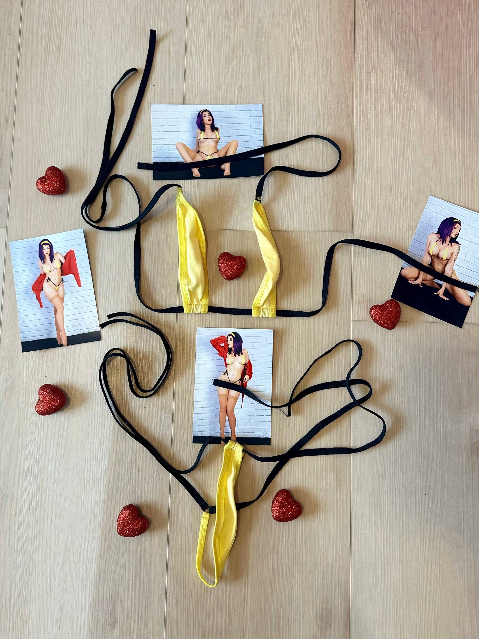 18+ only! Includes microkini worn during my Faye Valentine photoshoot. Four signed high res, glossy 4x6s featuring the microkini. Can be personalized if noted at check out!