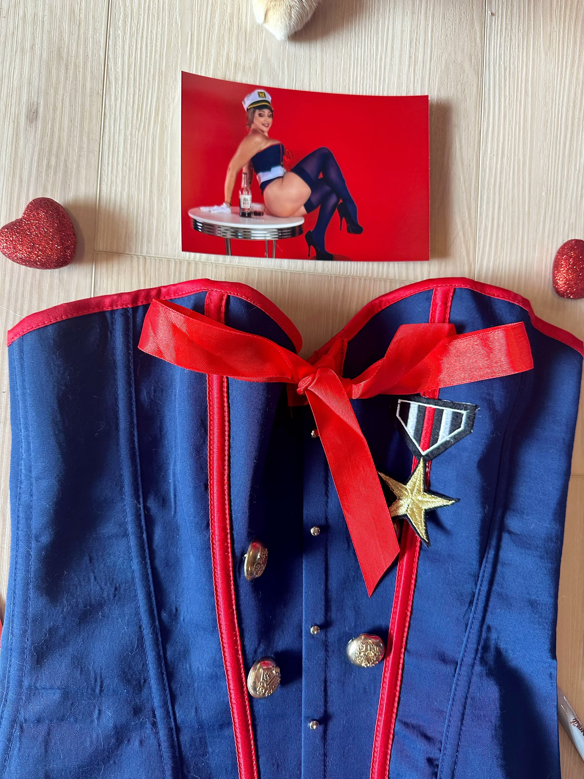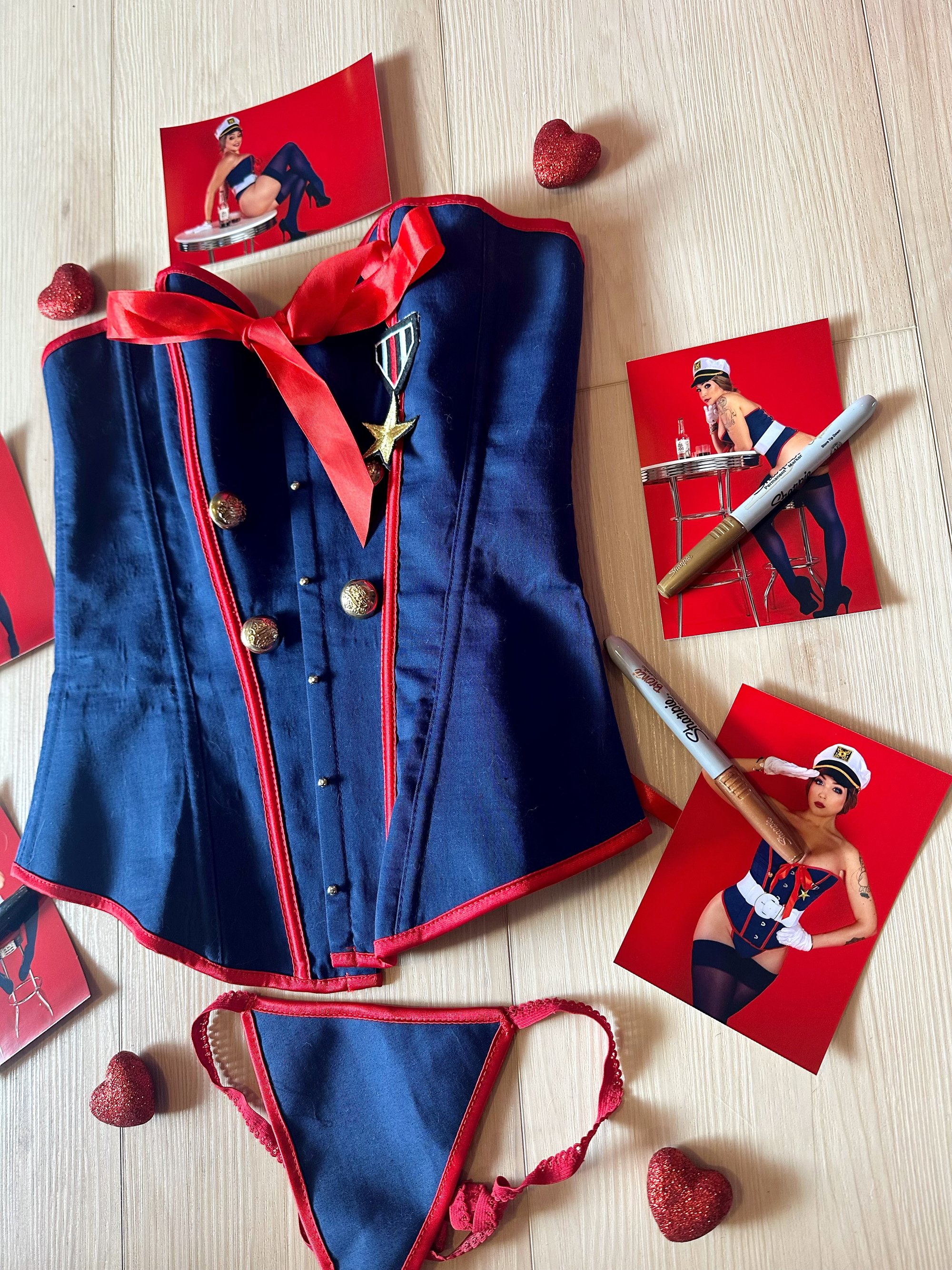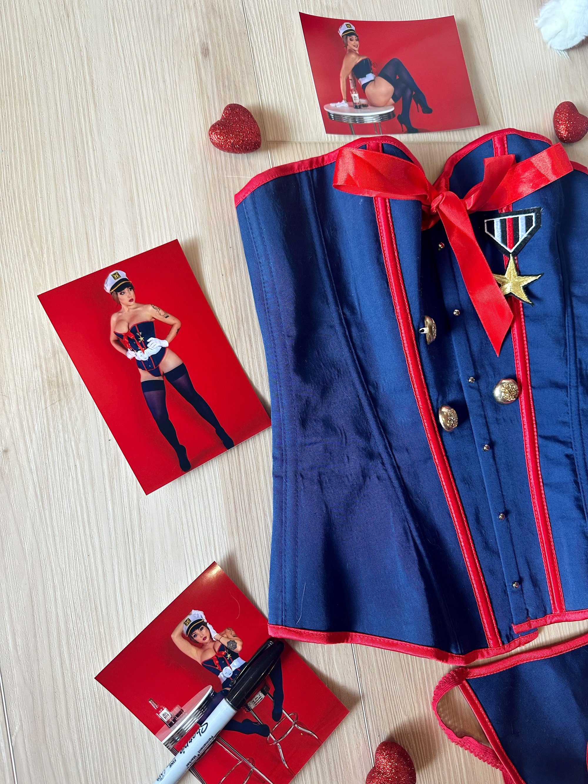18+ only! Includes two piece lingerie set featuring a corset top and thong worn during a Happy Birthday Marines photoshoot and video. Five signed high res glossy 4x6s featuring the lingerie. Can be personalized if noted at check out! Some photos contain nudityy.